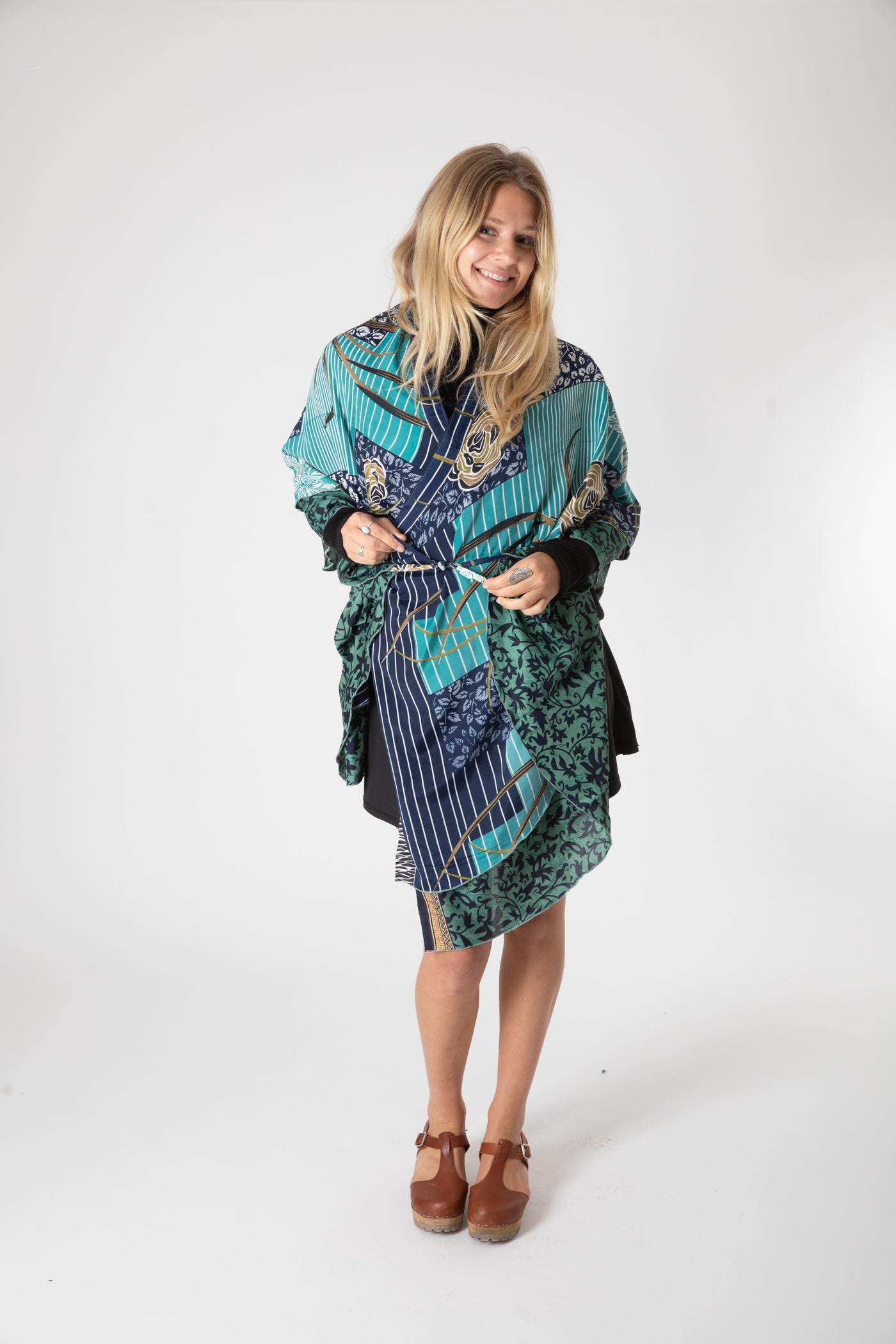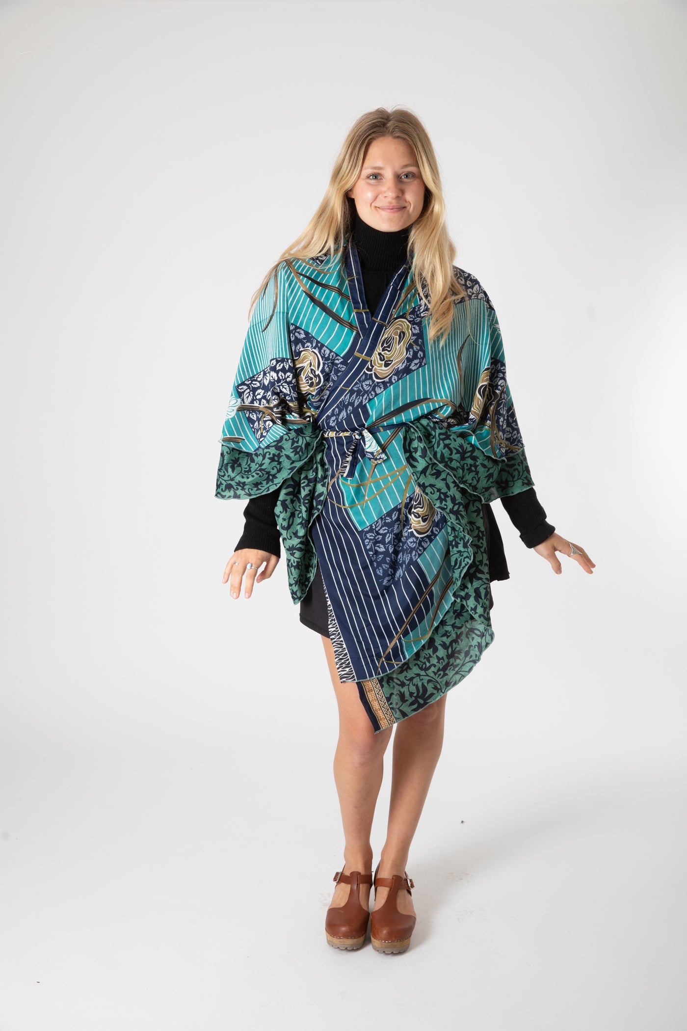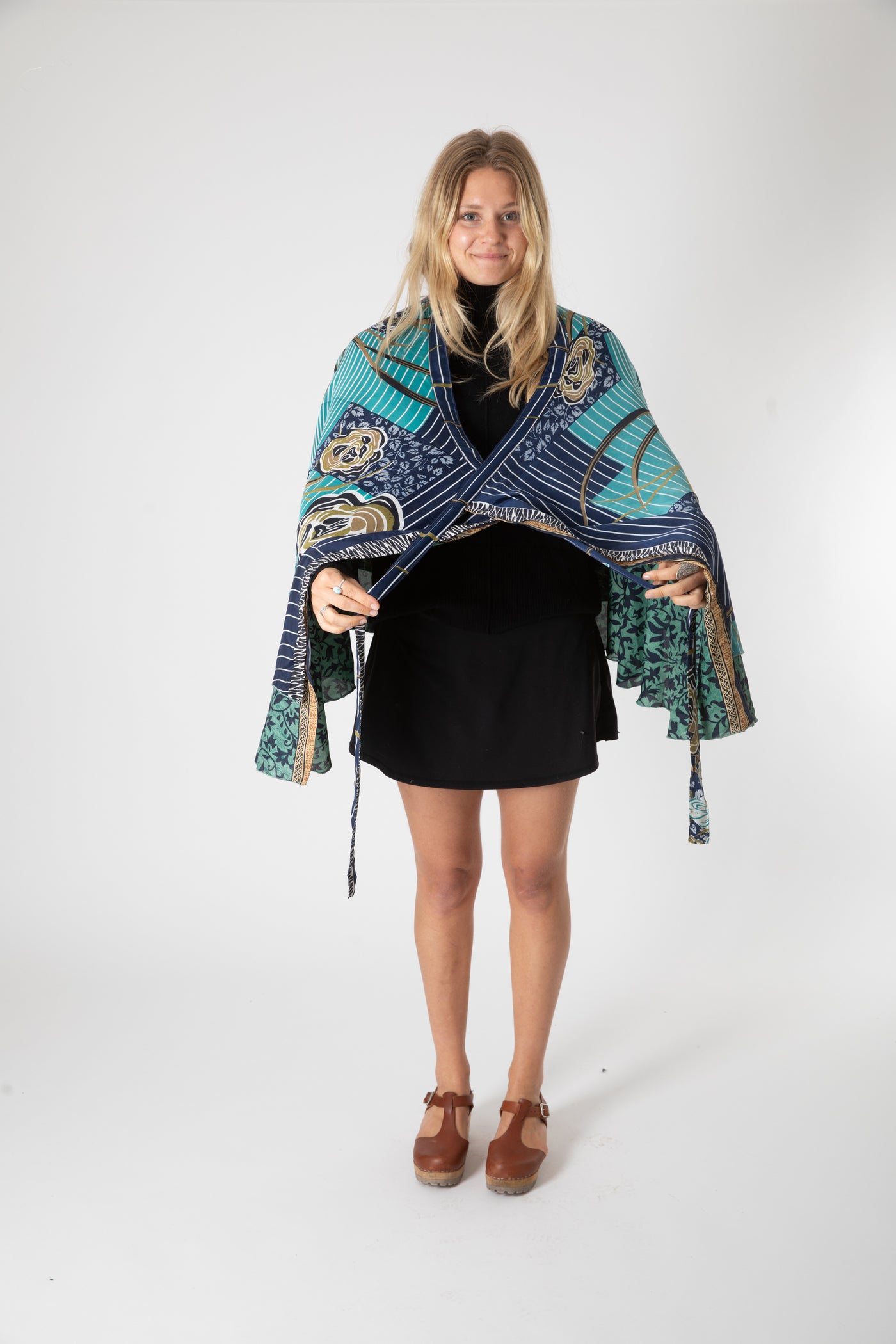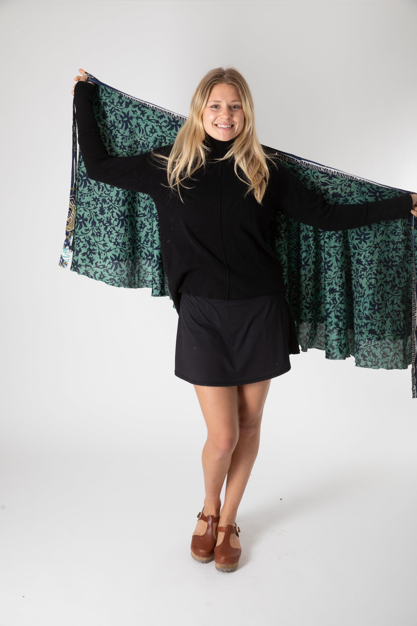This flattering silk cardigan cover up is made by following 5 easy steps and using one of our Long Sari Silk Wrap Skirts or our Tea Length Sari Silk Wrap Skirts, sprinkle of hippie style and dash of boho charm.