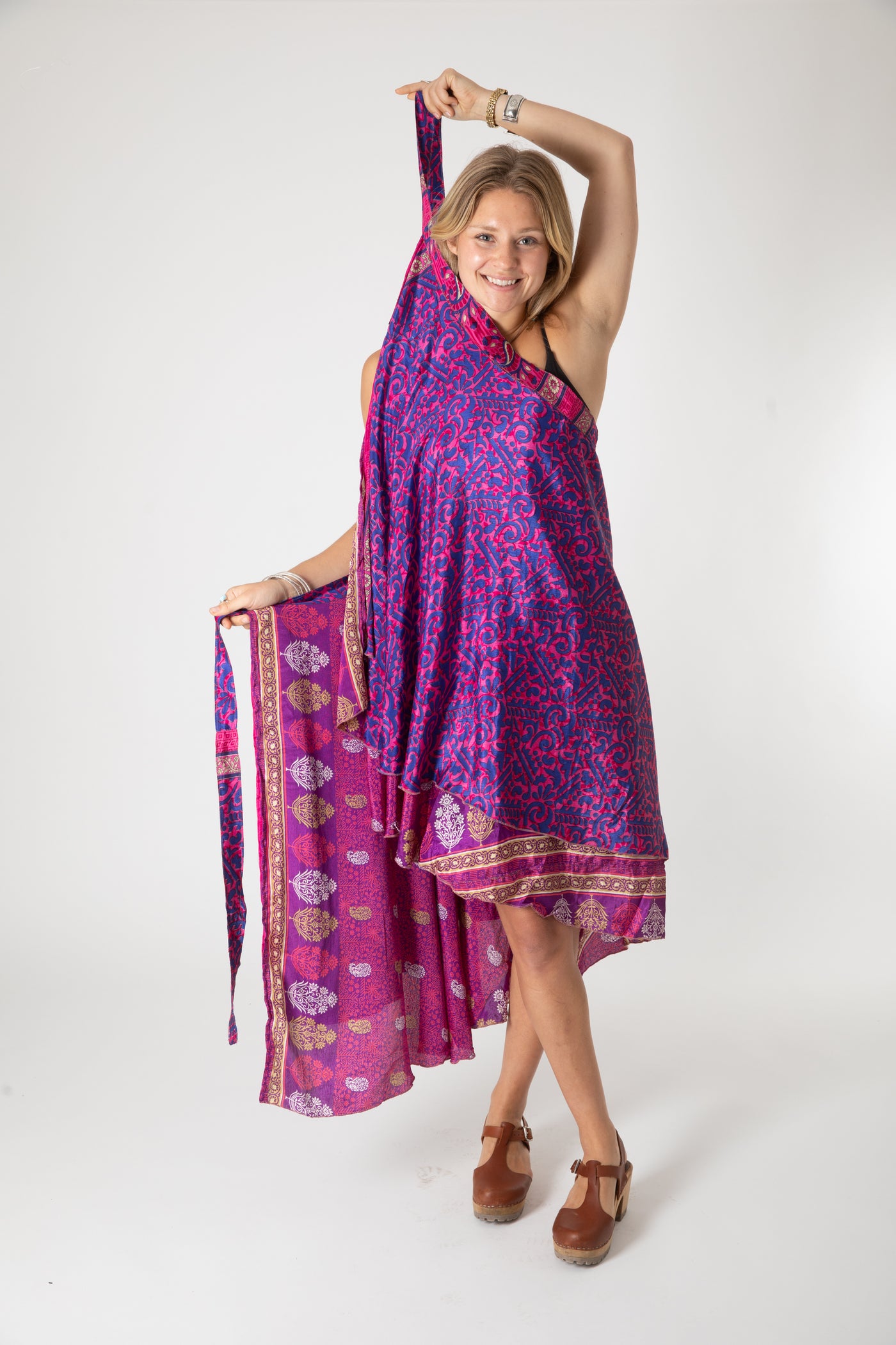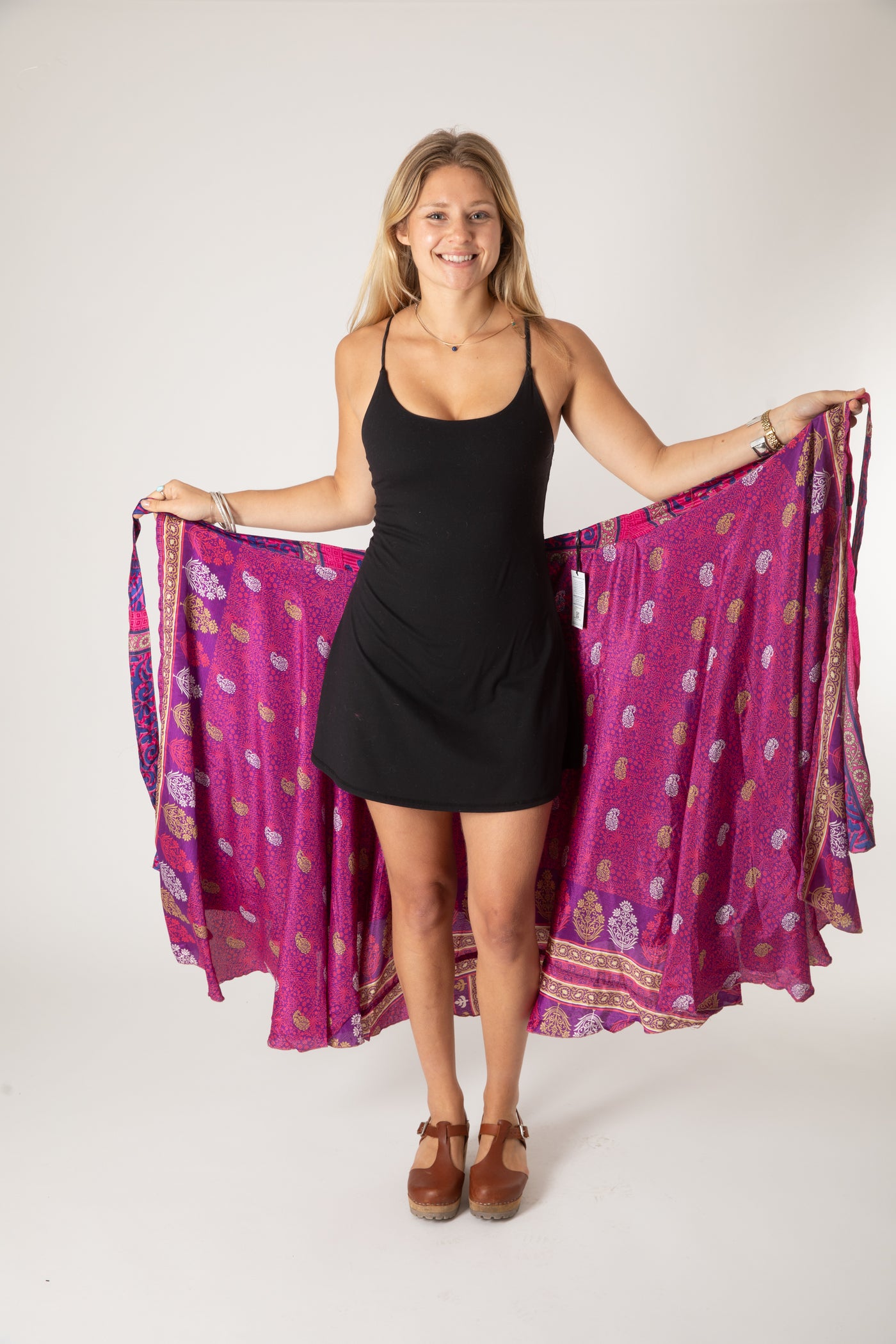 This recycled silk halter dress is made by following 5 easy steps and using one of our Long Sari Silk Wrap Skirts, a sprinkle of hippie style and dash of creative fashion inspiration.