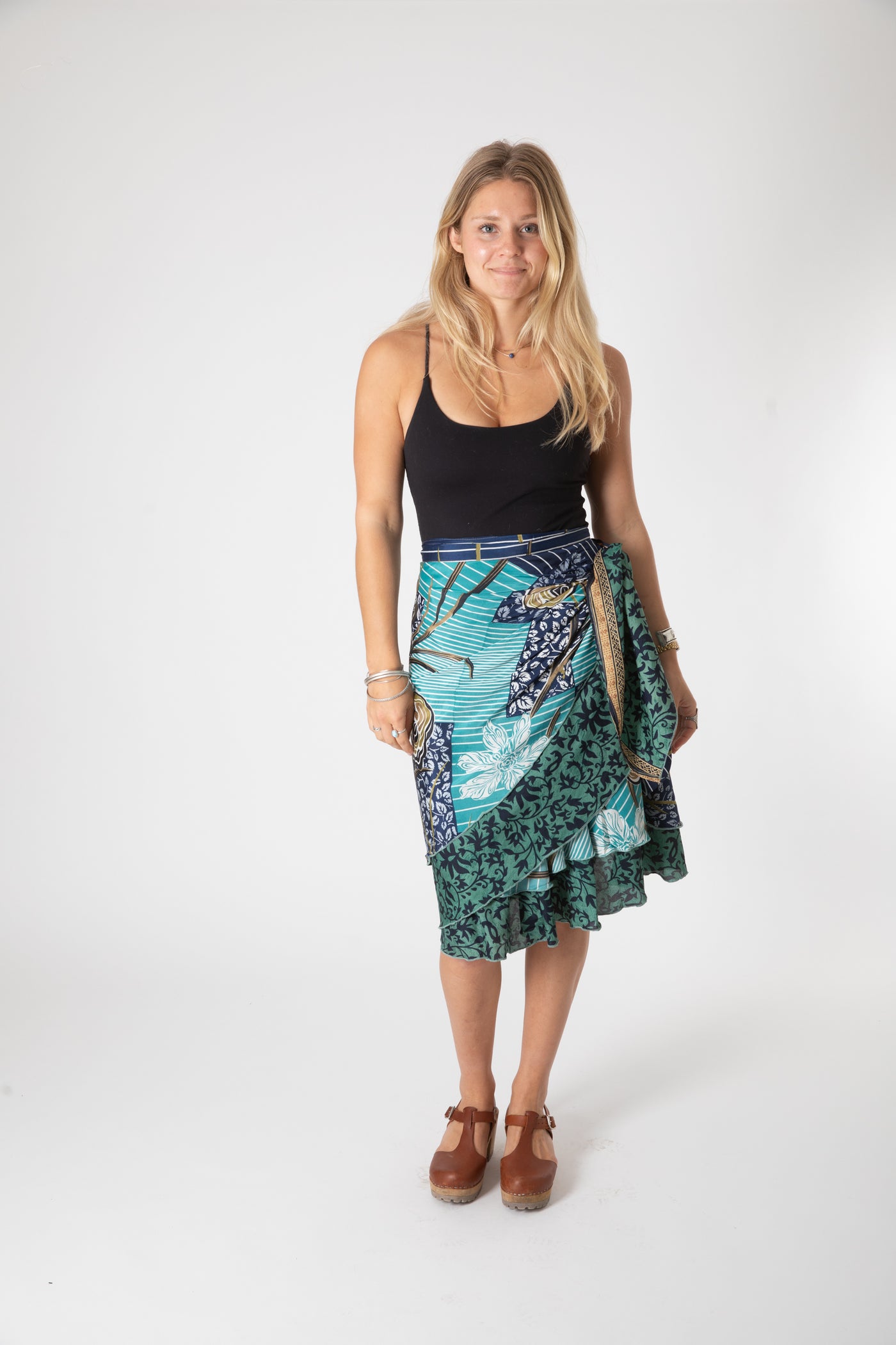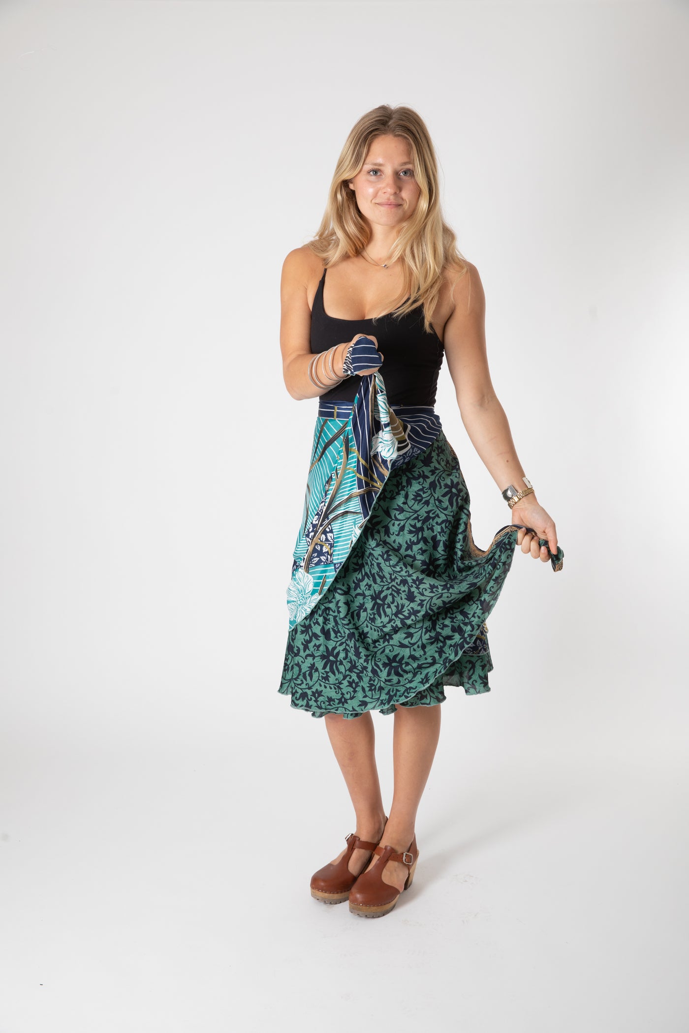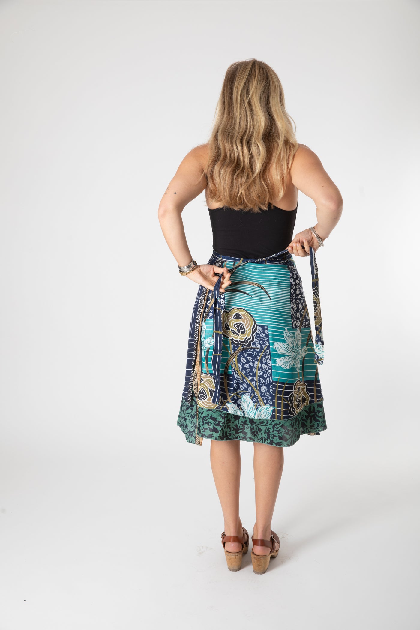 This stunning silk wrap skirt is made by following 5 easy steps and using one of our Long Sari Silk Wrap Skirts our Tea Length Sari Silk Wrap Skirts or our Mini Sari Silk Wrap Skirts sprinkle of hippie style and dash of bohemian charm.